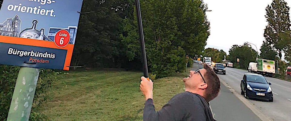 Auch der Mittwoch stand im Zeichen der Vorbereitung weiterer Kleiner Anfragen. Da aber nach der EU- und Kommunalwahl auch die Plakate wieder runtergenommen werden müssen, wurde der Tag etwas länger. Zusammen mit dem frisch gewählten AfD-Vertreter im Potsdamer Stadtparlament, Ambros Tazreiter, holten wir die Plakate von den Laternen, an die die linken Kräfte der Stadt schlichtweg nicht rankamen.