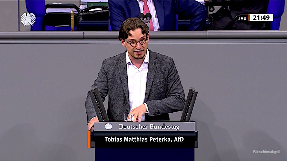 Tobias Matthias Peterka – Rede vom 17.09.2020 17Sept 202027 Okt 2021Add a comment Tobias Matthias Peterka – Bundesverfassungsgerichtsgesetz (Auslandeinsätze) https://www.youtube.com/watch?v=aTLLVNMRTWo?rel=0 Maßangefertigte Verfahren für LiNKS-GRÜN, die lehnen wir ab! Teilen auf: Klick, um auf Facebook zu teilen (Wird in neuem Fenster geöffnet) Facebook Klicke, um auf X zu teilen (Wird in neuem Fenster geöffnet) X Klicken, um auf Telegram zu teilen (Wird in neuem Fenster geöffnet) Telegram Klicken, um auf WhatsApp zu teilen (Wird in neuem Fenster geöffnet) WhatsApp Klick, um auf Pinterest zu teilen (Wird in neuem Fenster geöffnet) Pinterest Klick, um auf LinkedIn zu teilen (Wird in neuem Fenster geöffnet) LinkedIn Klick, um auf Reddit zu teilen (Wird in neuem Fenster geöffnet) Reddit Klick, um auf Tumblr zu teilen (Wird in neuem Fenster geöffnet) Tumblr Klick, um auf Pocket zu teilen (Wird in neuem Fenster geöffnet) Pocket Mehr Klicken, um einem Freund einen Link per E-Mail zu senden (Wird in neuem Fenster geöffnet) E-Mail Gefällt mir Wird geladen … Ähnliche Beiträge