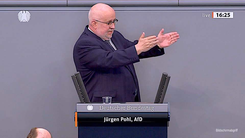 Jürgen Pohl – Rede vom 16.04.2021 16Apr 202127 Okt 2021Add a comment Jürgen Pohl – DDR-Rentenüberleitung https://www.youtube.com/watch?v=-f9Tbq6bfME?rel=0 Es ist schlichtweg ein Skandal, dass eine Debatte zum Thema Ost-Renten immer noch eine Debatte sein muss! Teilen auf: Klick, um auf Facebook zu teilen (Wird in neuem Fenster geöffnet) Facebook Klicke, um auf X zu teilen (Wird in neuem Fenster geöffnet) X Klicken, um auf Telegram zu teilen (Wird in neuem Fenster geöffnet) Telegram Klicken, um auf WhatsApp zu teilen (Wird in neuem Fenster geöffnet) WhatsApp Klick, um auf Pinterest zu teilen (Wird in neuem Fenster geöffnet) Pinterest Klick, um auf LinkedIn zu teilen (Wird in neuem Fenster geöffnet) LinkedIn Klick, um auf Reddit zu teilen (Wird in neuem Fenster geöffnet) Reddit Klick, um auf Tumblr zu teilen (Wird in neuem Fenster geöffnet) Tumblr Klick, um auf Pocket zu teilen (Wird in neuem Fenster geöffnet) Pocket Mehr Klicken, um einem Freund einen Link per E-Mail zu senden (Wird in neuem Fenster geöffnet) E-Mail Gefällt mir Wird geladen … Ähnliche Beiträge