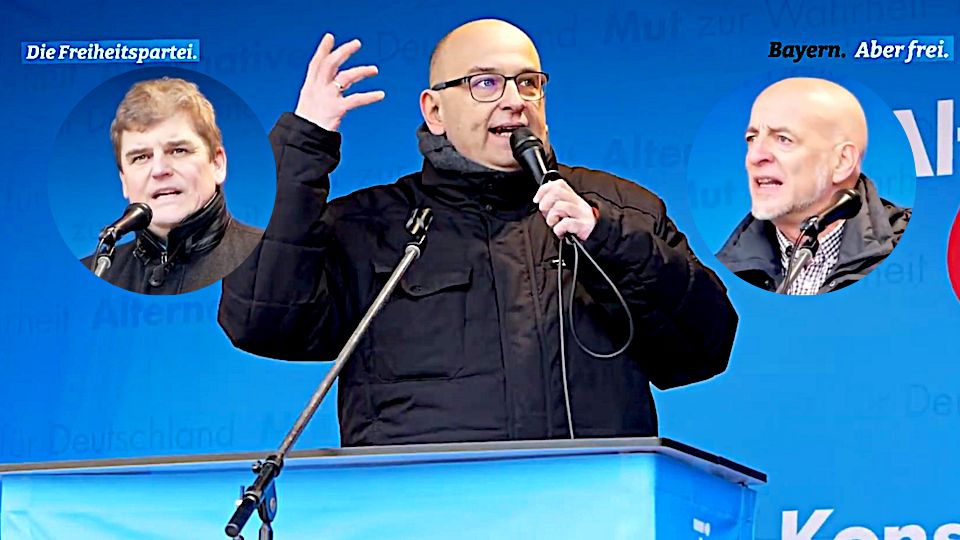 Dr. Rainer Kraft, Martin Böhm und Stephan Protschka bei Großkundgebung am Samstag, den 26.02.2022 in Augsburg